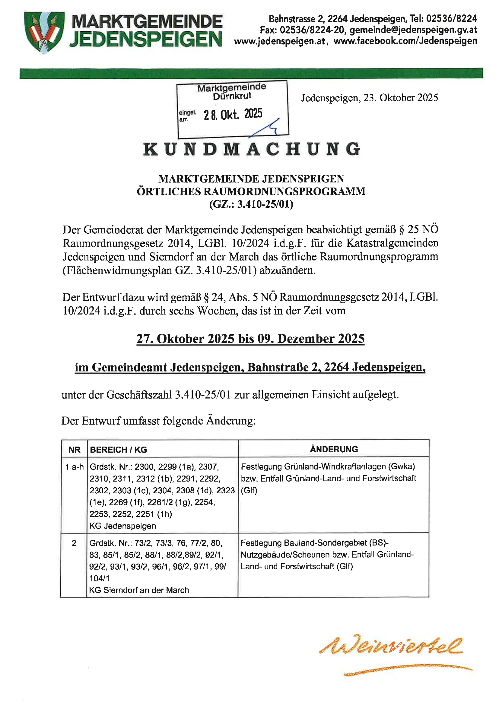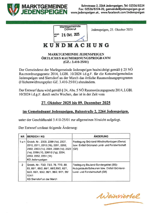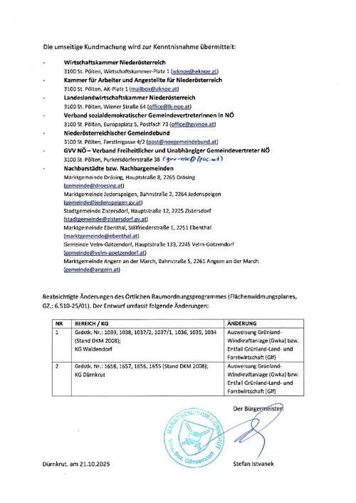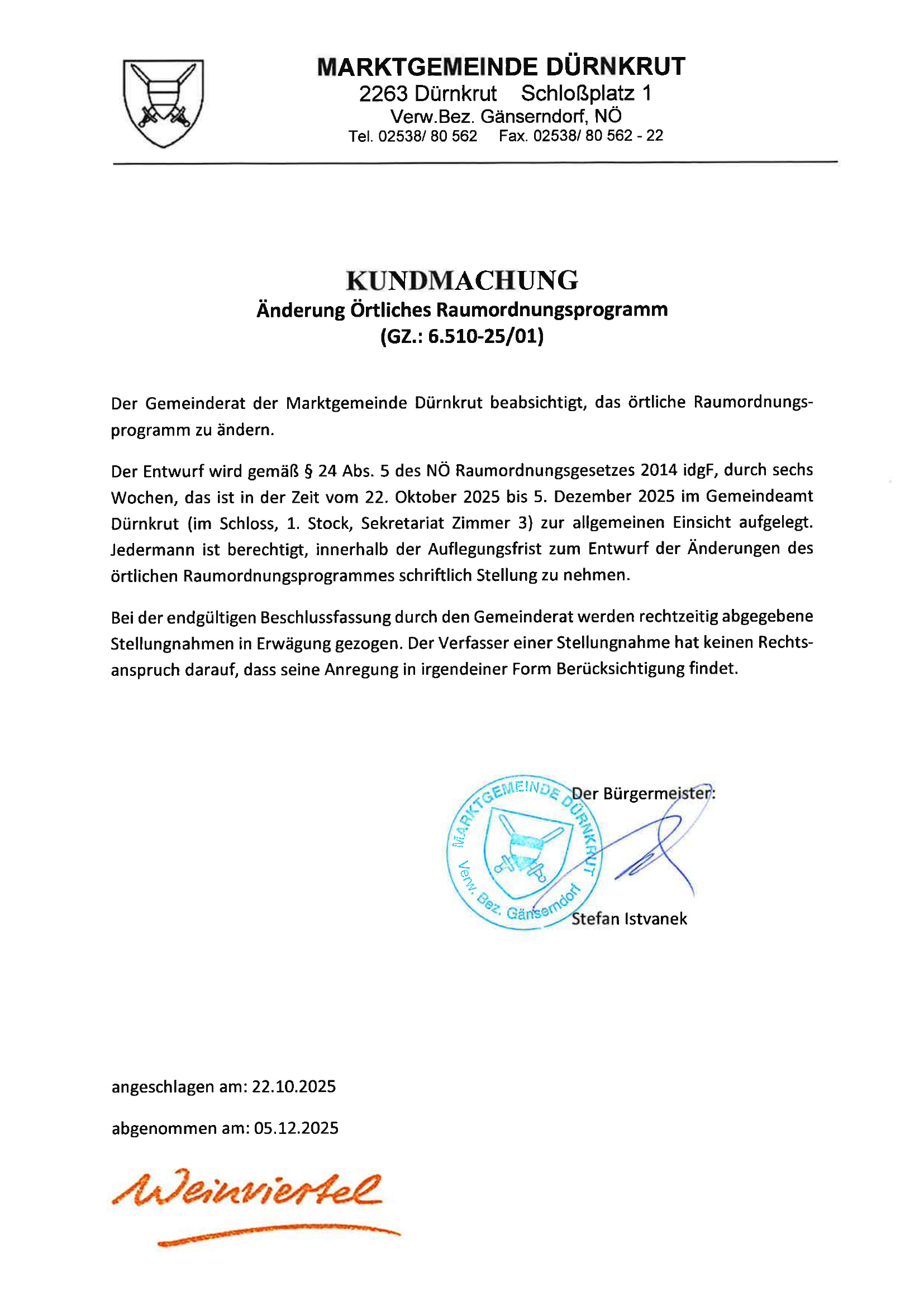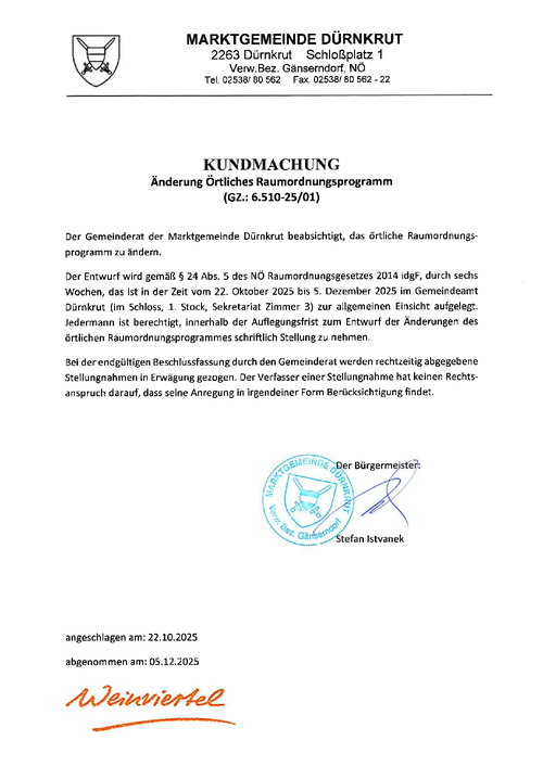 KUNDMACHUNG - Änderung Örtliches Raumordnungsprogramm