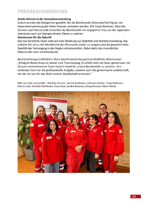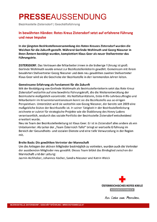 Presseaussendung Bezirksstelle Zistersdorf Do, 12. Februar 2026 Aktuell